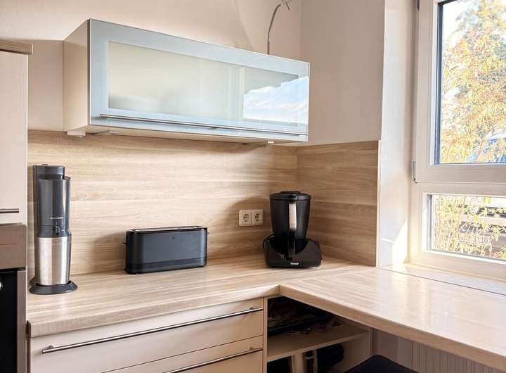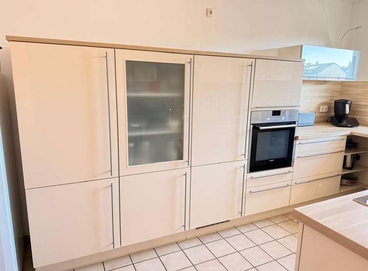 Küche: Eine maßgeschneiderte Einbauküche in sehr gutem Zustand kann vom Vormieter abgelöst werden.