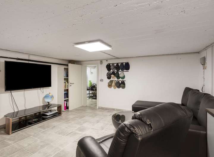 Das vollunterkellerte Untergeschoss bietet neben einer Waschküche, vielseitig nutzbaren Lagerbereichen sowie einem zusätzlichen WC zudem einen wohnlich ausgebauten Hobby- oder Arbeitsraum mit etwa 20 m² Nutzfläche.