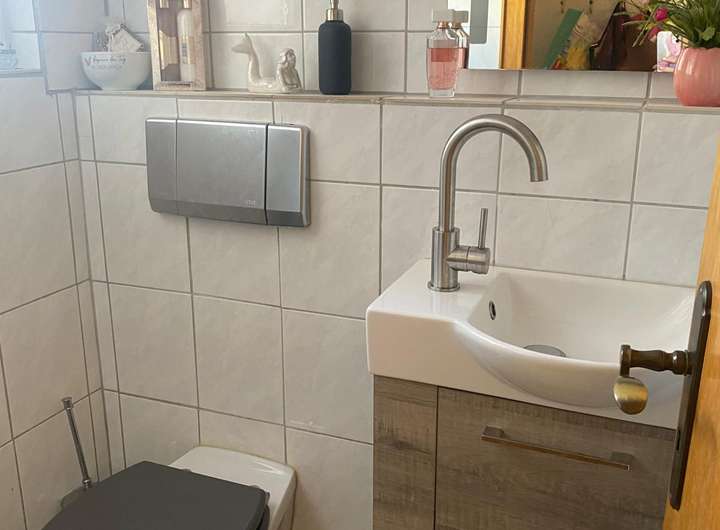 • Neues Bad (2023): Modern saniertes Badezimmer mit begehbarer Dusche.