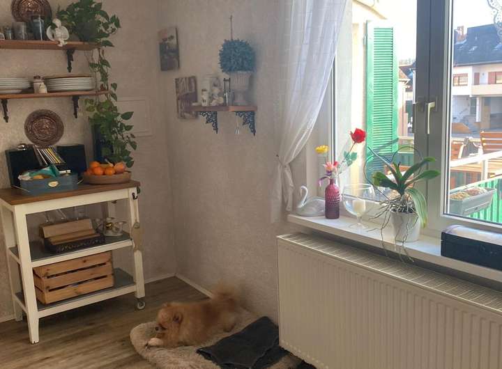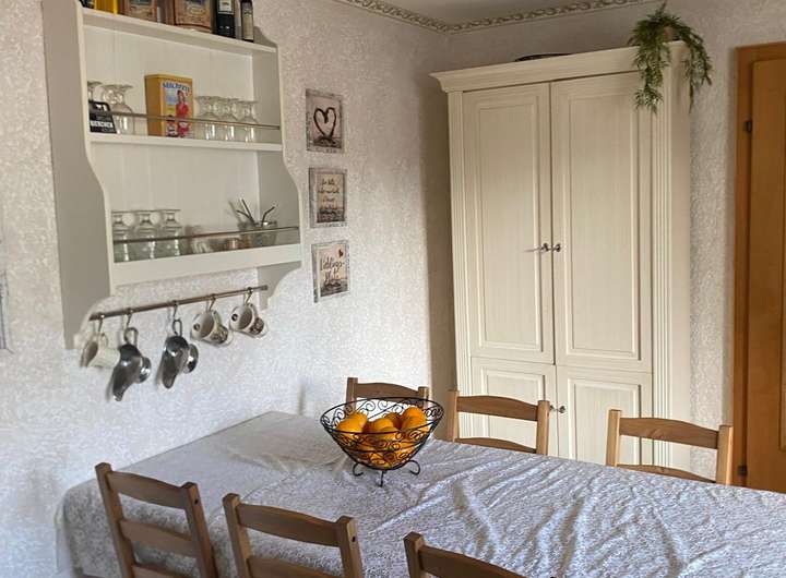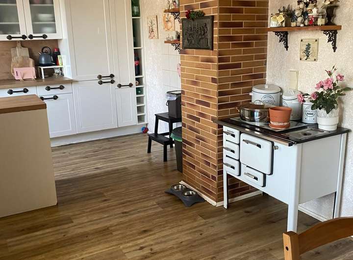 • Küche inklusive: Eine Einbauküche im Landhausstil ist vorhanden.