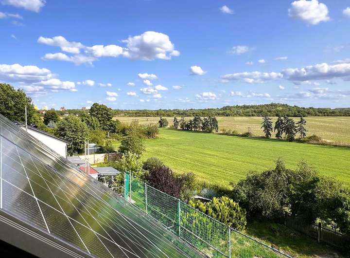 Ruhe mit Blick über Felder: Exklusives wohngesundes Plusenergie-Doppelhaus, S-Bahn fußläufig