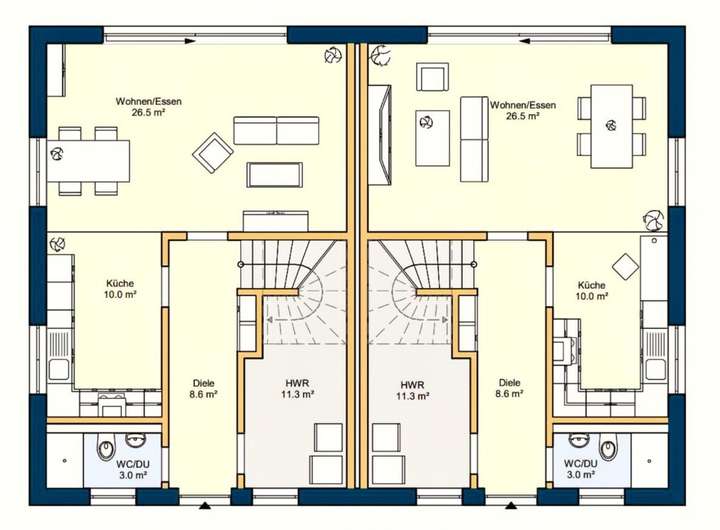Die Doppelhaushälften überzeugen mit einer modernen, durchdachten Ausstattung, die Komfort, Design und Nachhaltigkeit vereinen.