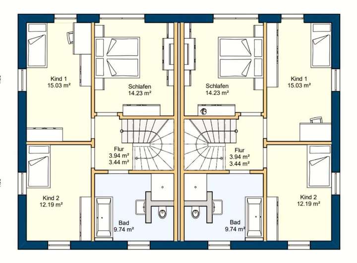 Jede der modernen Doppelhaushälften bietet ca. 158 m² Wohnfläche auf drei Etagen und steht auf einem ca. 380 m² großen Grundstück mit sonnigem Garten. Der durchdachte Grundriss mit 6 Zimmern schafft Platz für Familie, Arbeiten im Homeoffice und Gäste.