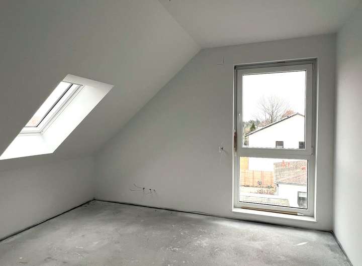 Im Erdgeschoss erwarten Sie ein offener Wohn- und Essbereich, ein Badezimmer sowie ein geräumiger Hauswirtschaftsraum. Eine 4 m breite Hebeschiebetür lässt Garten und Terrasse Teil Ihres lichtdurchfluteten Wohnzimmers werden. Eine voll ausgestattete hochwertige Einbauküche rundet das Angebot ab. Im Obergeschoss befinden sich drei helle Zimmer und ein modernes voll ausgestattetes Tageslichtbad. Das ausgebaute Dachgeschoss bietet zwei zusätzliche Zimmer mit Weitblick bis zum City-Hochhaus oder dem Wasserturm als Wahrzeichen von Rückmardorf. Ein praktischer großer Abstellraum und ein zusätzlicher Spitzboden mit Auszugstreppe sorgen für wertvollen Stauraum.