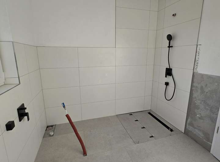 Hochwertige Feinsteinzeugfliesen verleihen den Räumen eine elegante, zeitlose Ästhetik. Sie sind nicht nur edel in der Optik, sondern auch pflegeleicht, langlebig und perfekt auf die Fußbodenheizung abgestimmt.