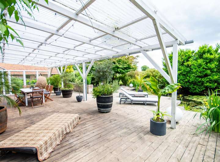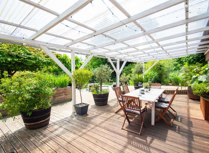 Mehrere Terrassen rund ums Haus laden ein, den Tag mit der Morgensonne zu beginnen oder den Abend bei Sonnenuntergang ausklingen zu lassen. Ein mobiler Grillplatz ergänzt das Freiluftleben perfekt – sei es für ruhige Stunden zu zweit oder gesellige Abende mit Freunden.