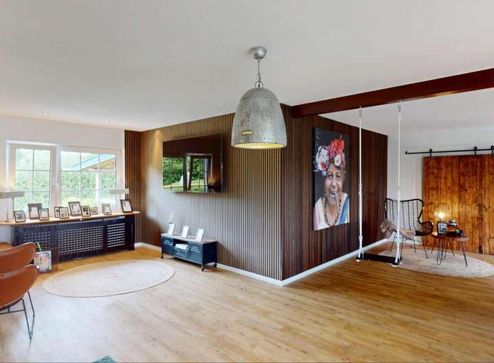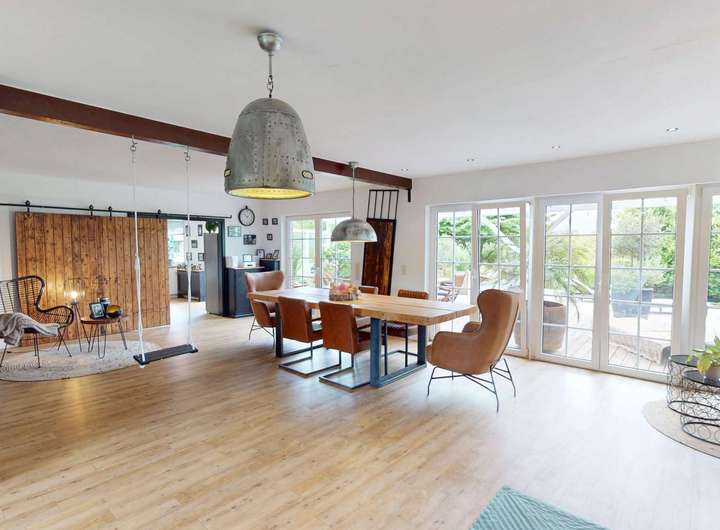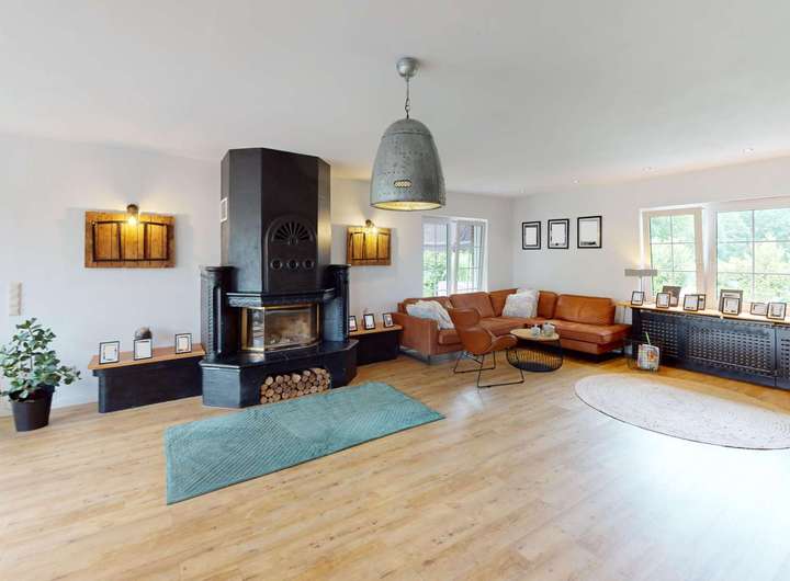Mit rund 268 Quadratmetern Wohnfläche bietet das Wohnhaus großzügigen Raum für Familien, Naturliebhaber oder Selbstverwirklicher. Der Grundriss ist offen, die Räume sind hell, wohnlich und bieten eine angenehme Verbindung zwischen Funktionalität und ländlichem Charme. Besonders die gemütlichen Abende am Kamin machen das Haus zu einem echten Wohlfühlort.