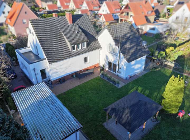 Dieses attraktive Einfamilienhaus mit hochwertig ausgebautem Anbau bietet seinem neuen Eigentümer maximale Flexibilität – ob als Zuhause für die große Familie, als Mehrgenerationenhaus oder als perfekte Kombination aus Wohnen und Arbeiten unter einem Dach.