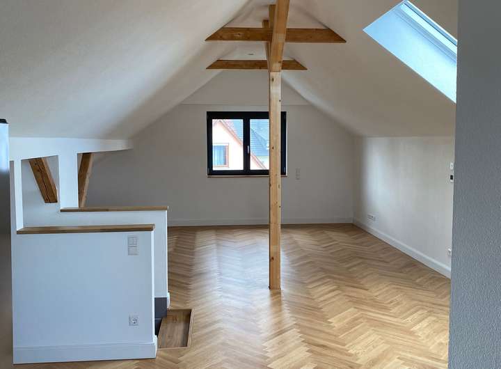 Dieses großzügige Haus im Haus befindet sich in einem Kernsanierten 2-Familienhaus. mit ca. 152 m² Wohnfläche und 5 Zimmern bietet es viel Platz. Das Wohnung verfügt über 2 Etagen und wurde mit hochwertiger Ausstattung versehen. Ein separates Gäste-WC und ein geräumiger Wohnbereich mit angrenzender Küche, die über eine Einbauküche verfügt, sind vorhanden. Zur Wohnung gehört ein großer Kellerraum und bietet somit zusätzlichen Stauraum. Eine PKW Stellplatz mit Wallbox ist in der Miete inkludiert, sowie wein weitere Außenstellplatz als option sorgen für bequemes Parken. Das Haus im Haus ist ab sofort bezugsfrei. Die Wohnung ist ideal für Interessenten die ein große Wohnung mit einem großen Außenbereich ohne viel Pflegeaufwand suchen. Die Dachterrasse hat 70 qm wovon 40 qm mit Terrassenplatten belegt sind. Also einen riesiger Outdoorbereich.