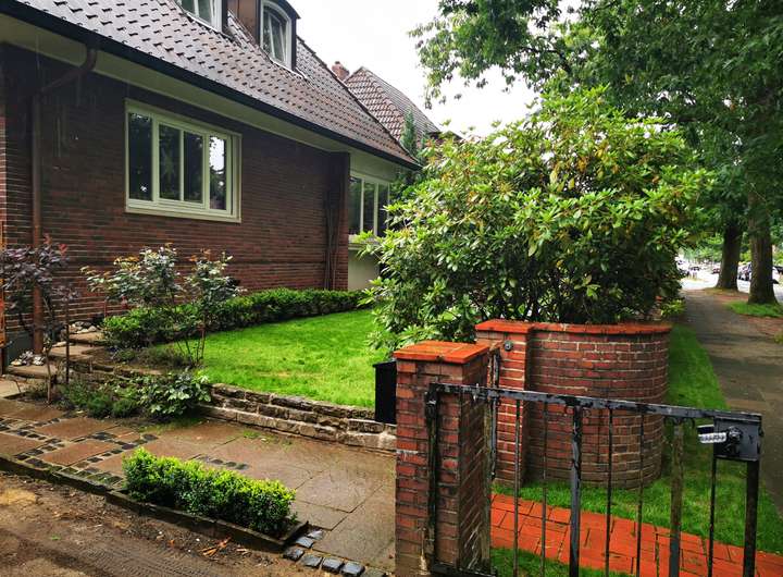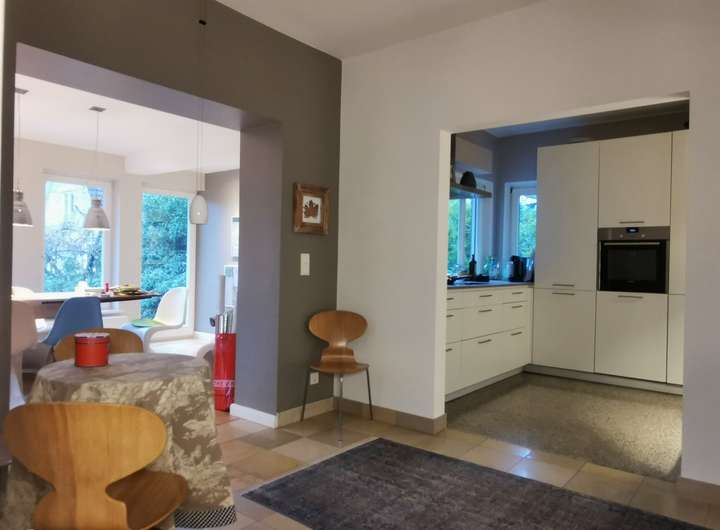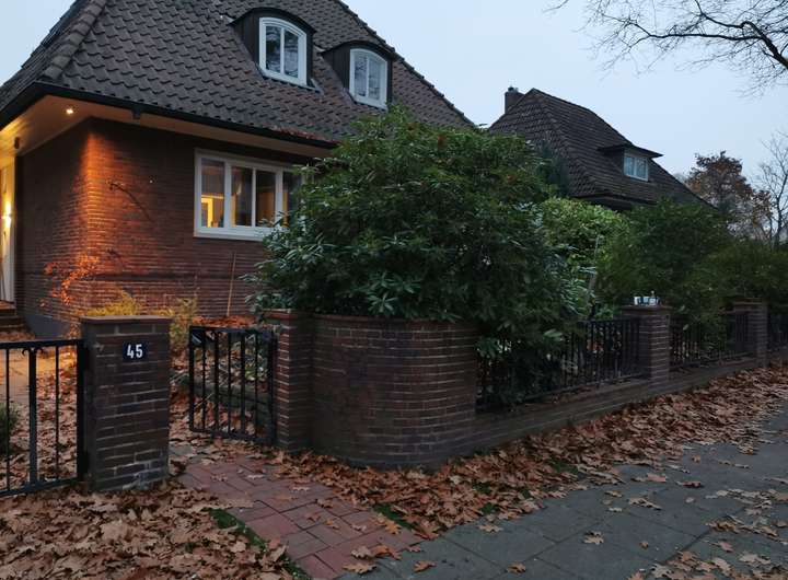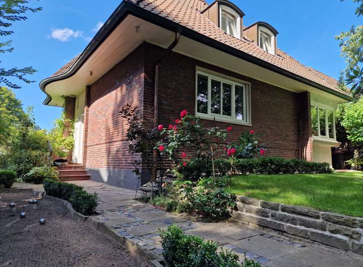 Dieses architektonische Schmuckstück, eine detailliert erhaltene und restaurierte Villa aus den 50er Jahren (ca. 181m² Wohnfläche auf ca. 498m² Grund) befindet sich in Marienthals bester Lage in einer ruhigen, alten Wohnallee mit Rotklinkervillen und alten Eichen.