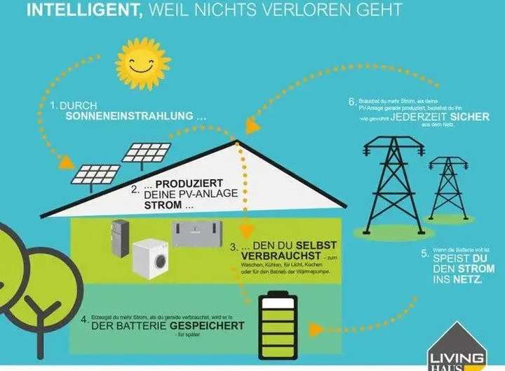 - Das I-KON Konzept: Nutze zunächst deinen eigenen Solarstrom (PV-Anlage in optimaler Größe) mit Wechselrichter und Lithium-Batteriespeicher (Varta Neo pulse), bevor du Strom zukaufst. Überschüssigen Strom kannst du einfach verkaufen.