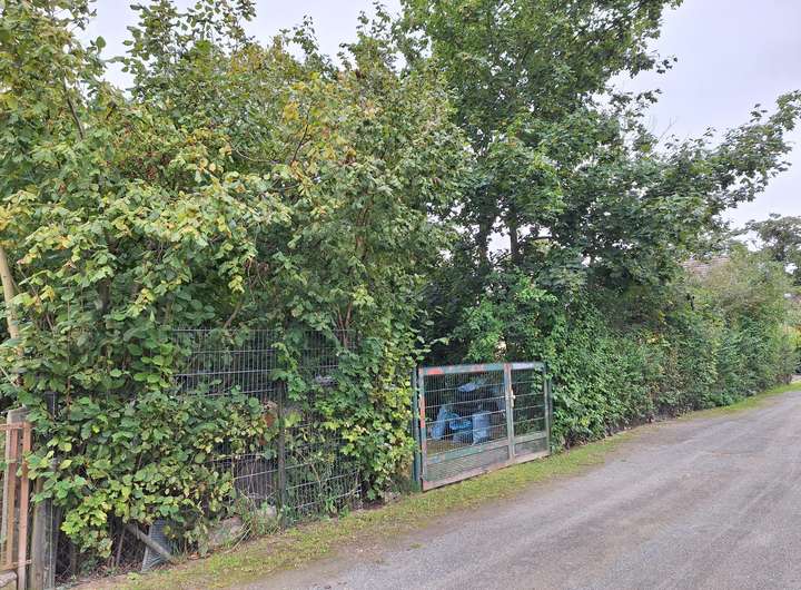 Das Grundstück ist fast quadratisch , eben und derzeit im hinteren Teil ein unbedeutendes Nebengebäude