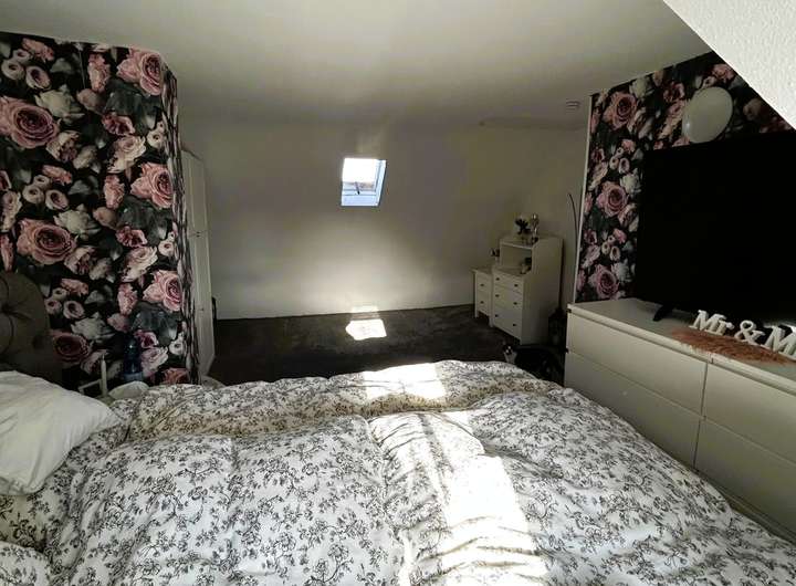 Im Dachgeschoss befindet ein großes Schlafzimmer.