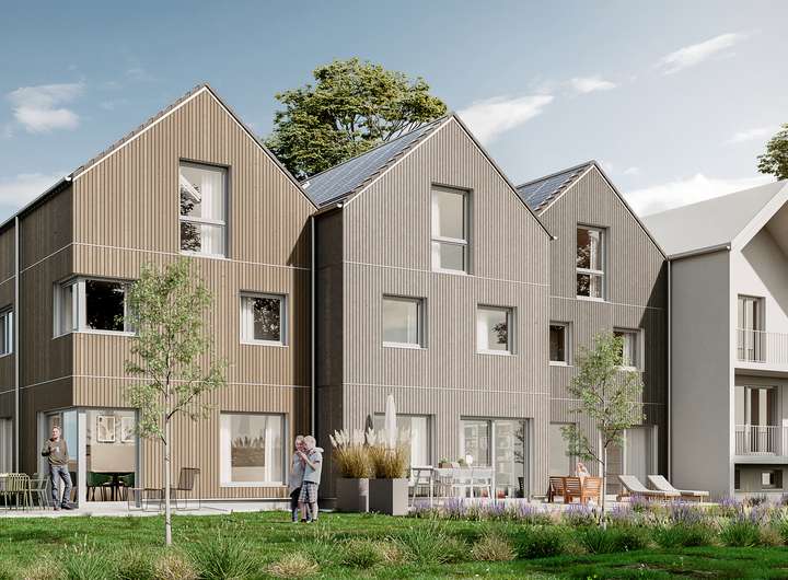 Zum Verkauf steht das Eckgrundstück für das Reiheneckhaus sowie die beiden Baugrundstücke für die Reihenmittelhäuser.