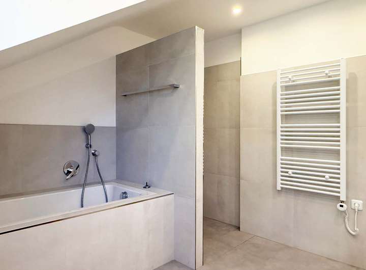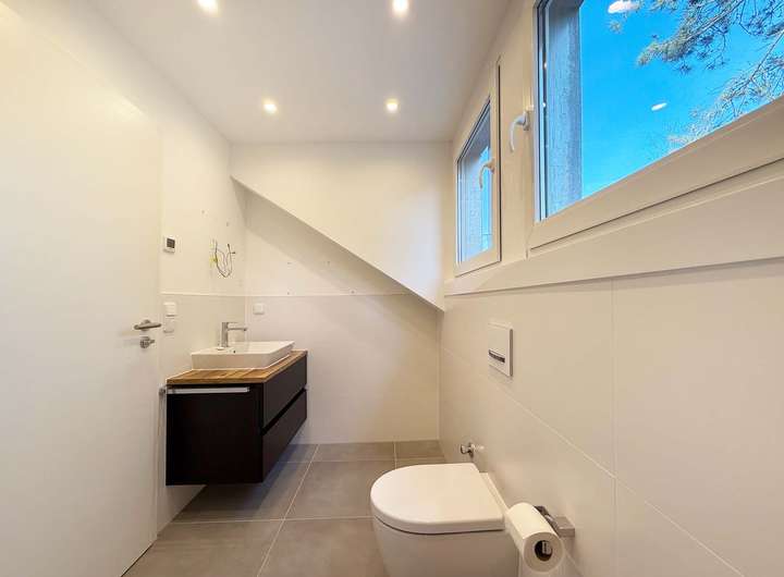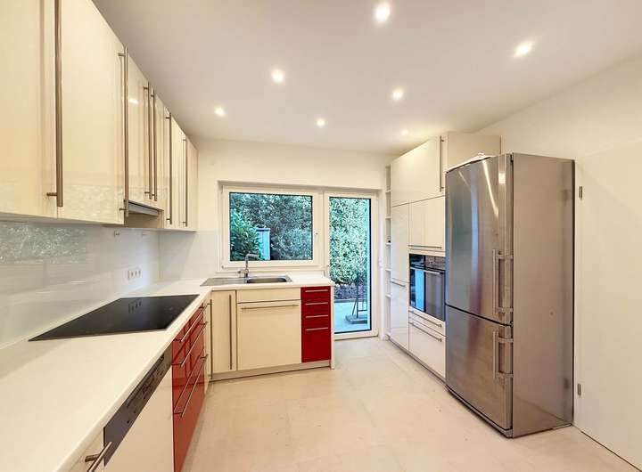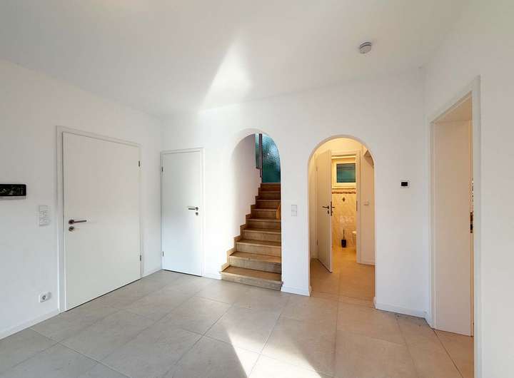 Ausstattung: • Video-Sprechanlage • Fußbodenheizung mit Einzelraumthermostaten • Bodenbeläge: Fliesen, Eichenholzdielen • Dreifachverglasung • Elektrische Rollläden • voll unterkellert • LED-Einbauleuchten in Küche, Bädern, WCs, Treppenhaus und Flur • Klimaanlage im Schlafzimmer • Wasserenthärtungsanlage • Garage mit elektrischem Sektionaltor und Wallbox • Gas und Strom sind mit dem Versorger direkt abzurechnen