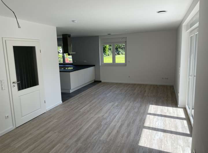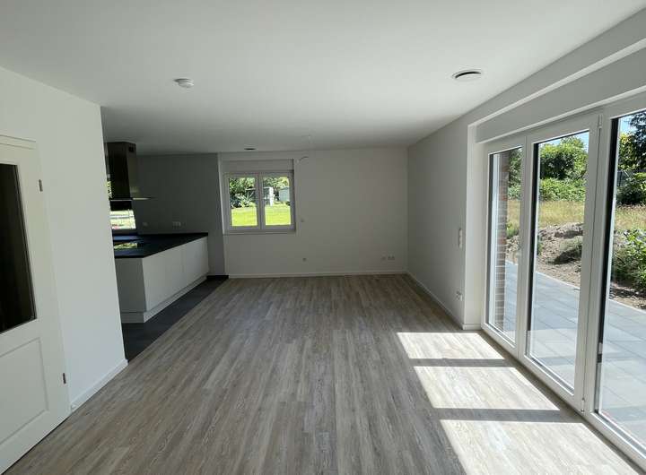 Im Erdgeschoss befindet sich der großzügige Wohn-/Essbereich mit direktem Zugang zur sonnigen Süd-West-Terrasse und dem Garten.