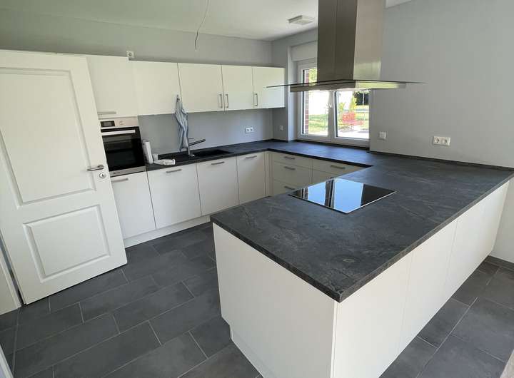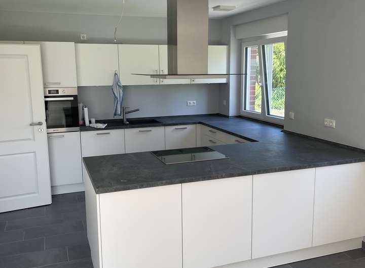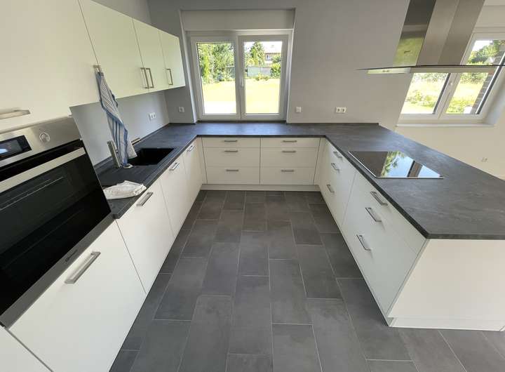 - Einbauküche mit Induktionskochfeld, Dunstabzugshaube, Backofen, Kühlschrank und Geschirrspüler