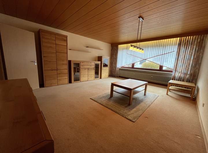 Zur Vermietung steht ein freistehendes Wohnhaus im Stadtteil Hausen mit einer Wohnfläche von 120 qm. Die gesamten Wohnräume befinden sich im Erdgeschoss des Wohnhauses. Das Haus verfügt weiter über einen Keller, Garten sowie eine Doppelgarage.