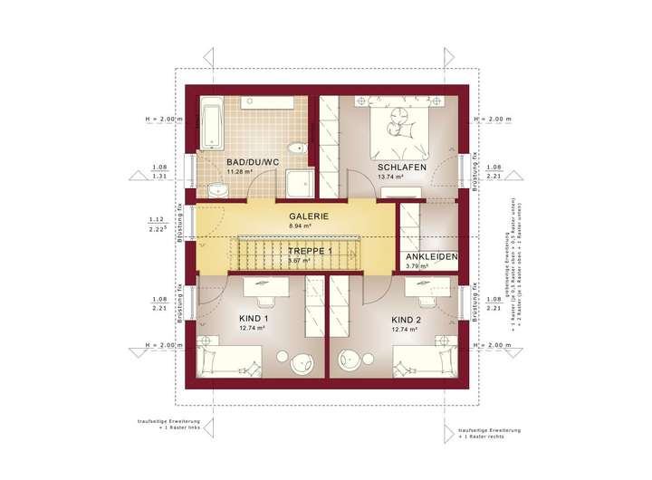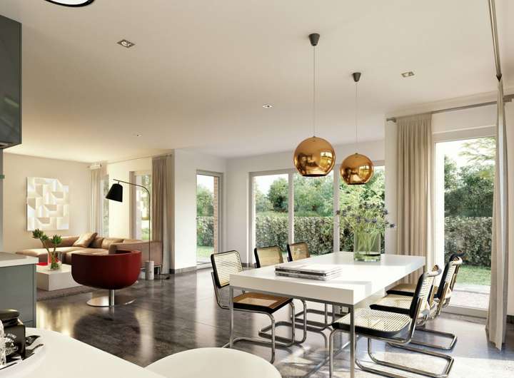 An alles gedacht - alles dabei! 136 m² schöner Wohnen. EVOLUTION 136 fasziniert nicht nur mit seinen beiden schicken Satteldach-Varianten mit 38° Dachneigung und 100 cm Kniestock oder 25° Satteldach und 160 cm Kniestock, sondern es hat noch einiges mehr zu bieten. Denn auch mit dem eleganten Walmdach, dem schicken Pultdach oder dem modernen Flachdach mit Attika macht es eine ausgezeichnete Figur. Eines haben aber wieder alle gemeinsam: fantastische Architektur, maximalen Wohngenuss und unendlich viele Design-Möglichkeiten.