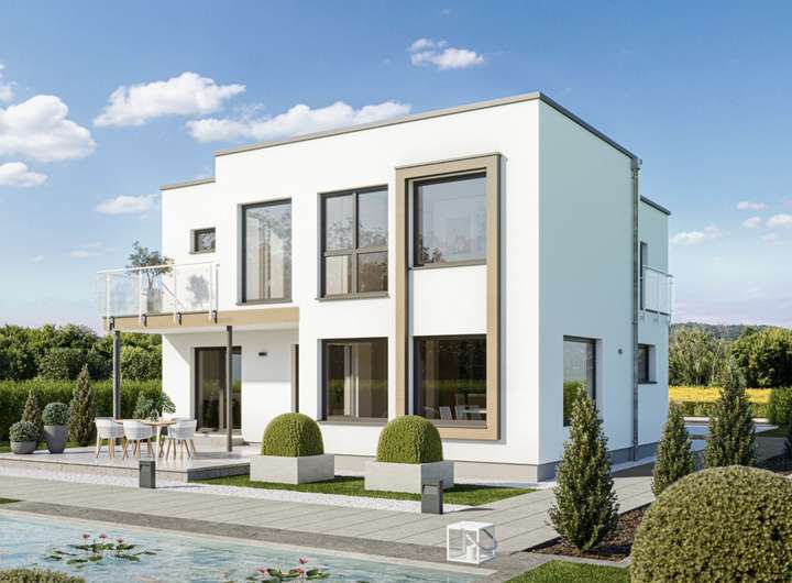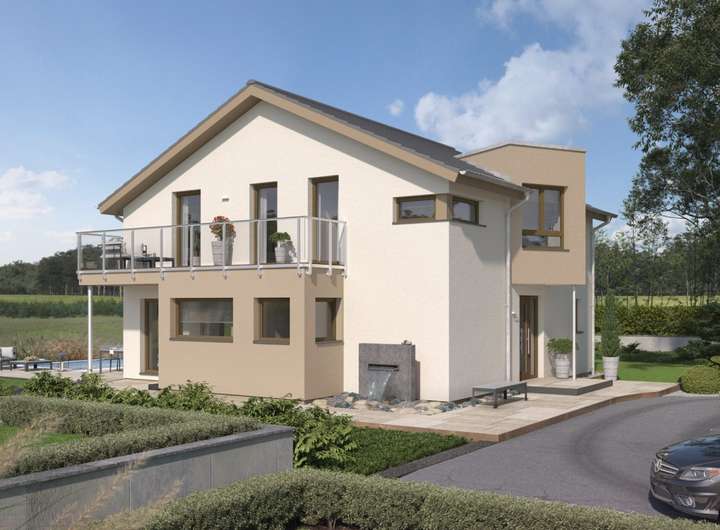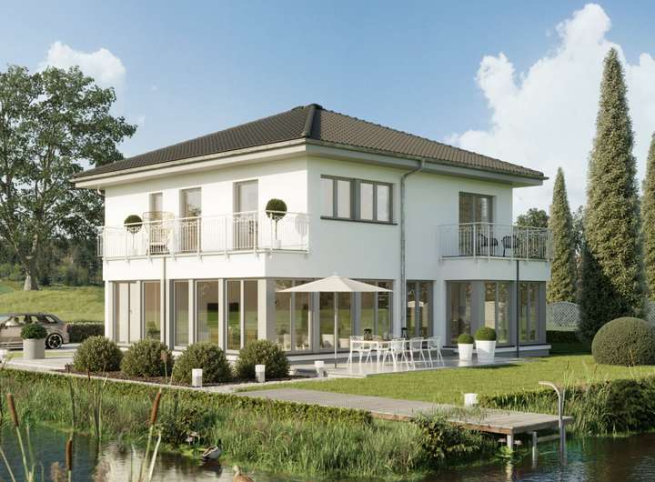 Das EVOLUTION 177 ist dank seiner hervorragenden Raumaufteilung genau das richtige Haus für größere Familien und kann auf Basis mehrerer vorgeplanter Varianten ganz individuell gestaltet werden. Als herrschaftliche Stadtvilla mit Walmdach zeigt es schon von außen wahre Größe. Außergewöhnlich große Fensterflächen und gleich zwei Wintergartenerker mit Balkon sorgen für fantastisch viel Licht im ganzen Haus und setzen gleichzeitig stilvolle Akzente.