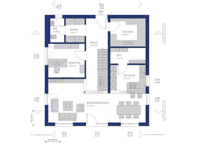die im Hinblick auf Kubatur, architektonischer Gestaltung und Energieeffizienzklasse an individuelle Anforderungen und Bedürfnisse unserer Bauherren angepasst werden kann.