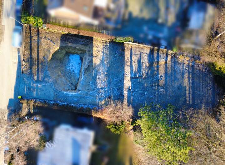 Das früher bebaute Grundstück wurde altlastenfrei zurückgebaut, d.h., es wurden alle bestandenen Gebäude abgerissen, anschließend wurde die komplette Grundstücksoberfläche abgetragen.