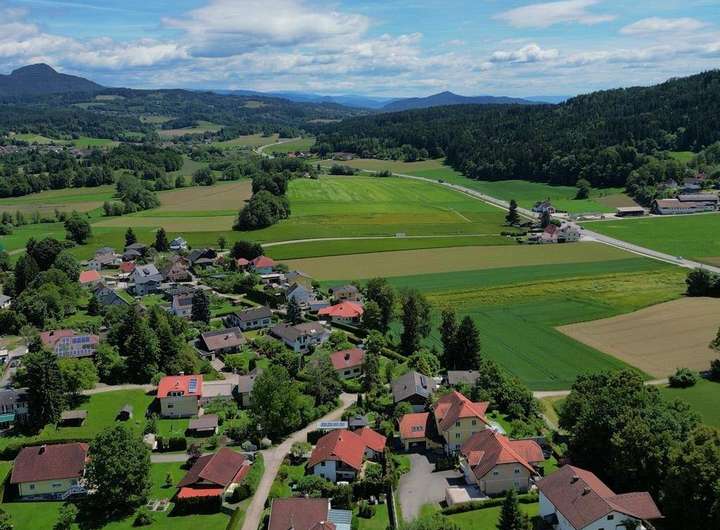 Moosburg, an der Stadtgrenze zu Klagenfurt und nur 12 Autominuten zum Wörthersee - etwas versteckte Lage hinter einer Baumreihe.
