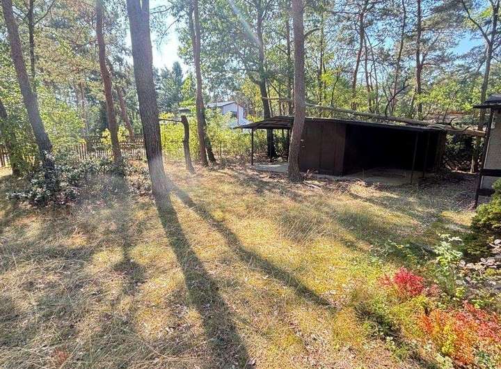 Obwohl das Grundstück derzeit noch nicht erschlossen ist, sind alle notwendigen Versorgungsleitungen (Strom, Wasser, Telefon) bereits bis zur Grundstücksgrenze verlegt, was den zukünftigen Bau erheblich erleichtert. Die vorhandenen Bauwerke, ein kleiner Bungalow und ein Schuppen, können abgerissen werden, was zusätzliche Gestaltungsmöglichkeiten für das Grundstück eröffnet.