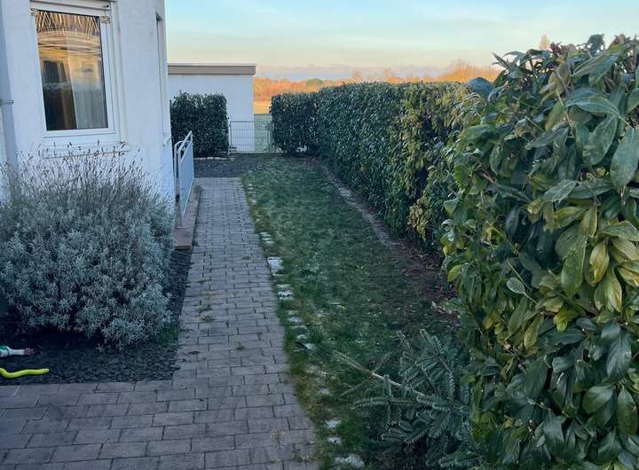 Das Haus bietet viel Platz für Familien und hat einen pflegeleicht angelegten Garten mit Brunnen für die Bewässerung mit Grundwasser in ruhiger Feldrandlage. Zusätzlicher Stauraum ist durch den großzügigen Keller ebenfalls gewährleistet.