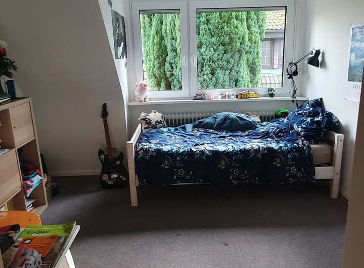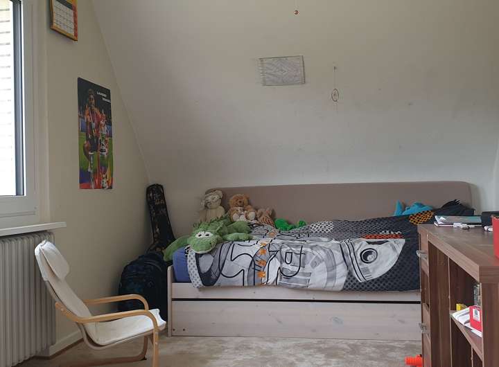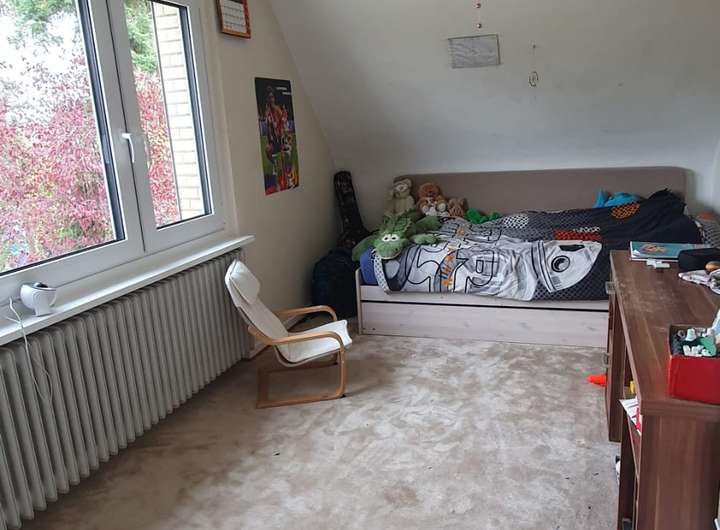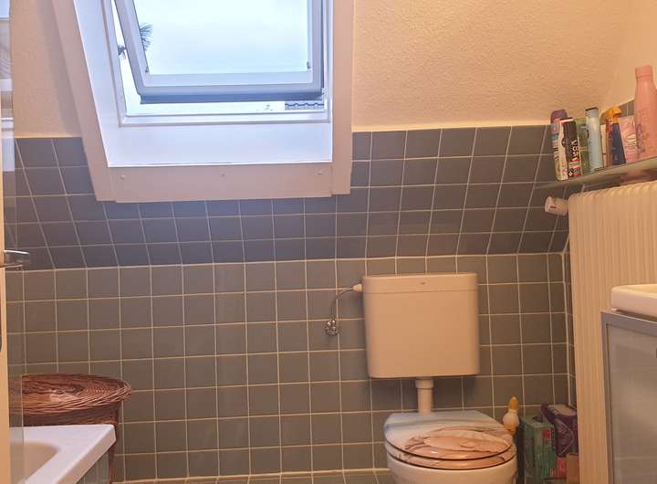 Über eine schmale Treppe im Flur gelangt man in den ausgebauten Dachboden. Dieser ist offen gestaltet und könnte als Arbeits- oder Spielzimmer benutzt werden.