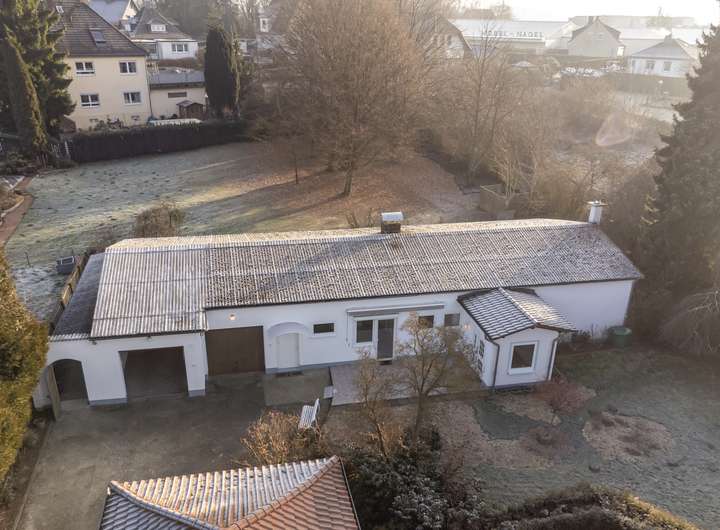 Das Haus liegt in zweiter Reihe an einer Hauptverkehrsstraße hinter einem anderen Haus und ist über eine eigene Auffahrt zu erreichen. Fußläufig sind der ÖPNV (Bus und Bahn) sowie Supermarkt und Fitnessstudio zu erreichen.
