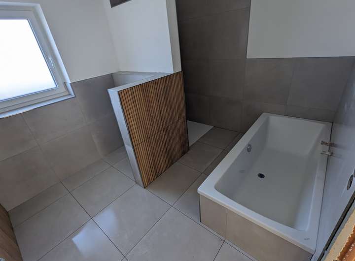 Hochwertige Fließen im EG, Designboden im OG, Fussbodenheizung, Dachbodenzugang als zusätzliche Abstellfläche, Bad und WC möbiliert