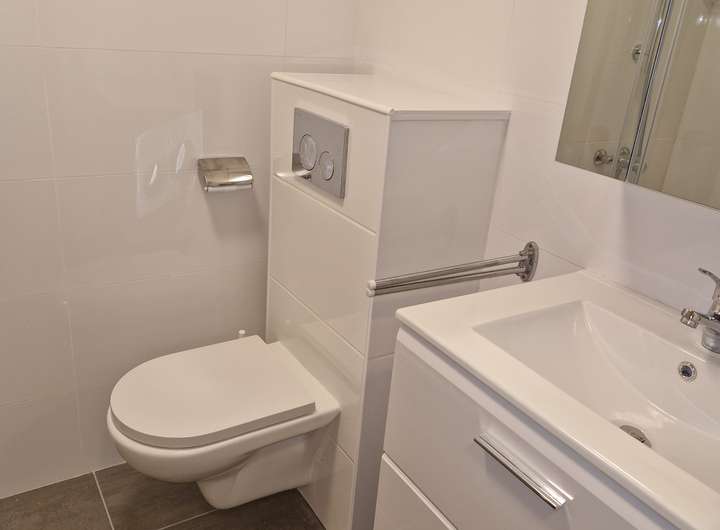 Gäste-Bad: Dusche und WC.