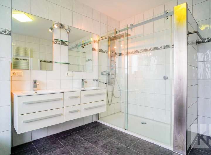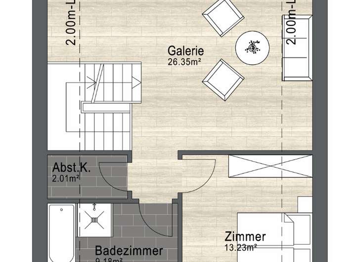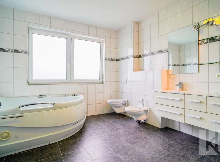 Über eine zentrale Treppe führt der Weg ins erste Obergeschoss. Drei flexibel nutzbare Zimmer eröffnen vielfältige Möglichkeiten – ob als Schlafzimmer, Homeoffice, Hobbyraum oder Rückzugsort für die ganze Familie. Ein großzügiges Badezimmer mit Eckwhirlpool und separater Dusche ergänzt diese Ebene auf praktische Weise.