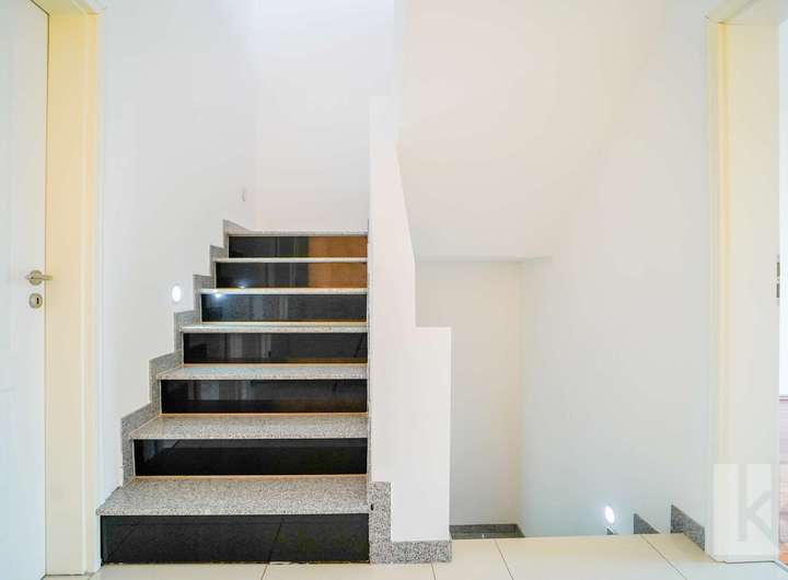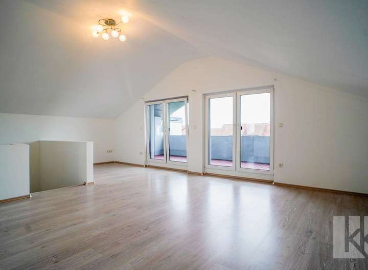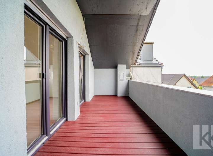 Das ausgebaute Dachgeschoss bildet eine eigene kleine Wohneinheit: Ein lichtdurchflutetes Studio mit Zugang zu einem privaten Balkon sowie ein kleines Duschbad machen diesen Bereich ideal für heranwachsende Teenager oder Gäste, die sich ein Stück Privatsphäre wünschen.