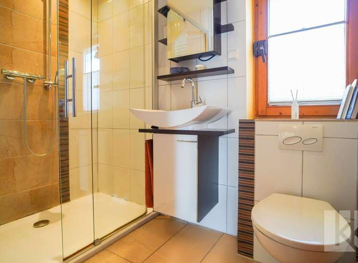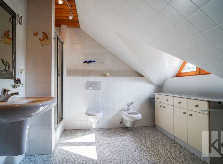 Ein weiteres Split-Level führt Sie ins Dachgeschoss mit dem Hauptbadezimmer – ausgestattet mit Badewanne, Dusche, WC, Bidet und Tageslicht – sowie drei gemütlichen Schlafzimmern.
