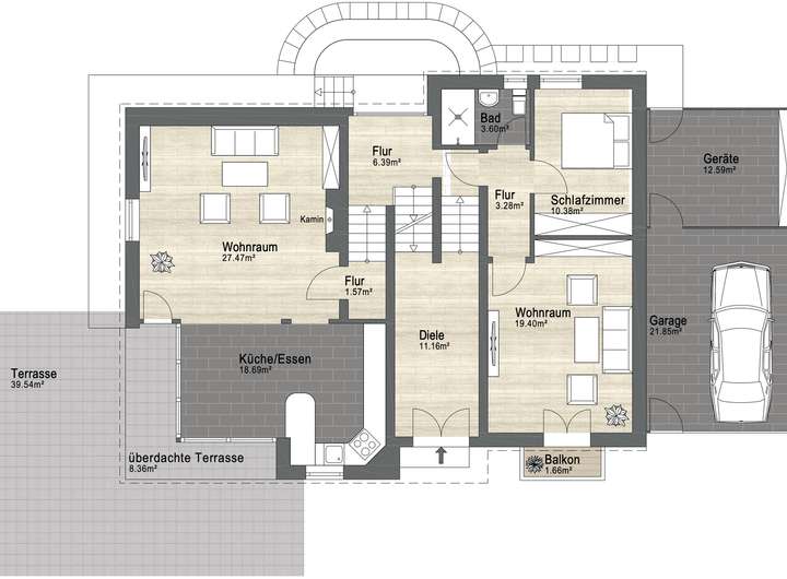 • offener Wohn- und Essbereich inkl. Einbauküche