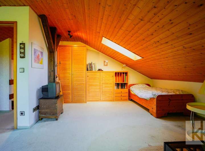 Über eine Raumspartreppe erreichen Sie das nachträglich ausgebaute Dachgeschoss. Auch wenn diese Fläche aktuell nicht zur Wohnfläche zählt, bietet sie alles, was man sich wünscht: Zwei helle, großzügige Zimmer, zuletzt als Kinderzimmer genutzt, und ein weiteres Bad mit Dusche. Die angenehme Raumstimmung und die wohnliche Atmosphäre machen diesen Bereich zu einem echten Mehrwert für Familien mit mehr Platzbedarf.