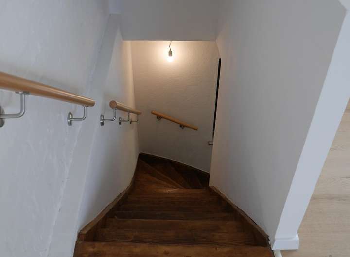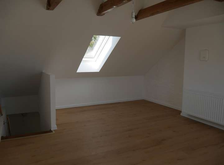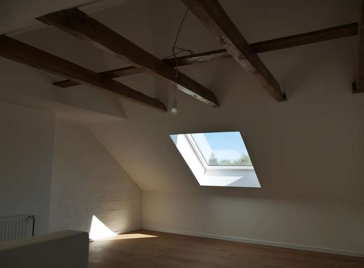 Ein besonderes Highlight ist das ausgebaute Dachgeschoss, in dem die originalen Holzbalken aufwendig freigelegt und aufgearbeitet wurden. Zwei Dachfenster sorgen für viel Tageslicht und bieten nachts einen freien Blick in den Sternenhimmel - ein perfekter Ort zum Träumen oder Arbeiten.