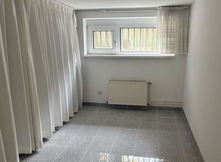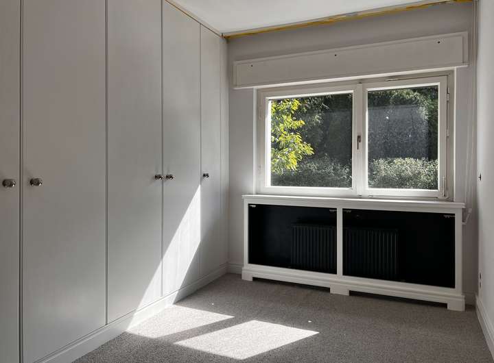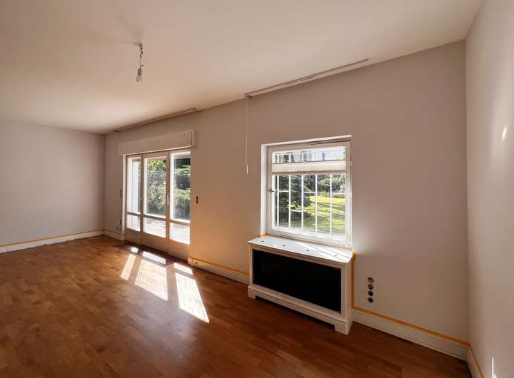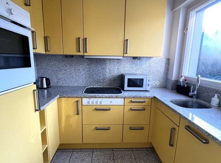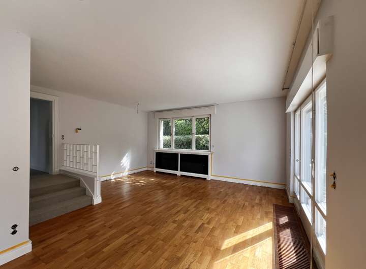 Der Innenbereich ist funktional und lichtdurchflutet. Die Haupträume bestehen aus einem Wohnzimmer, zwei weiteren Zimmern, einer Küche mit Einbauküche, einem Bad sowie einem Gäste-WC. Maßgefertigte Einbauschränke im gesamten Haus sorgen für zusätzlichen Stauraum. Das tagesbelichtete Untergeschoss mit Wasch- und Lagerraum sowie zwei weiteren Zimmern, bietet außerdem flexible Nutzungsmöglichkeiten. Der Kellerbereich, der Eingangsbereich und die Küche sind vollständig mit Granitplatten ausgekleidet. Das Wohnzimmer verfügt über einen Eichenparkettboden, während der Flur und die beiden weiteren Zimmer mit Teppichboden ausgelegt sind. Über das mitbringen von Haustieren wird im Einzelfall entschieden. Das Haus wird teilmöbliert (Einbauschränke- und Küche) vermietet und verfügt über eine moderne Niedertemperaturheizung. Es wird ausschließlich an Nichtraucher vermietet.