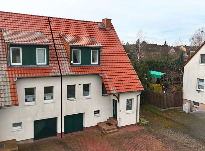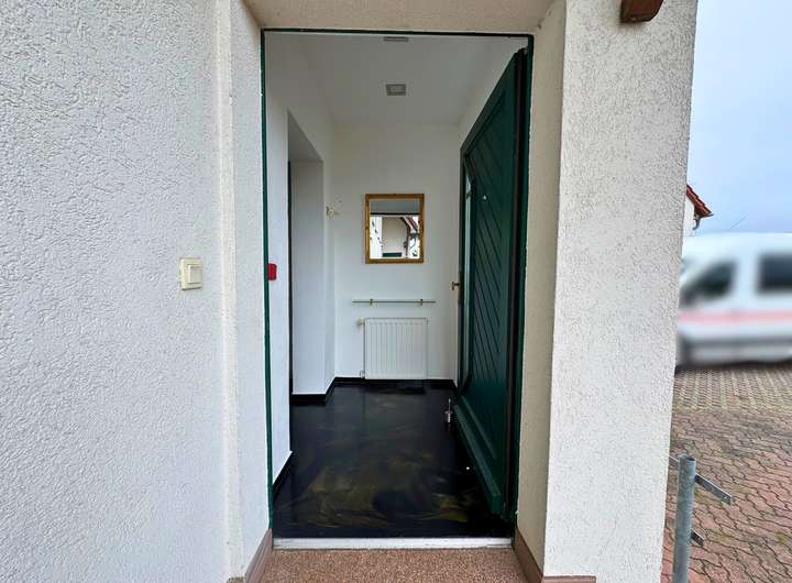 Direkt vor dem Objekt befinden sich zwei Stellplätze. Zusätzlich gehört eine Garage zum Haus. Diese wurde vom langjährigen Vormieter zugemauert und als Abstellraum genutzt.