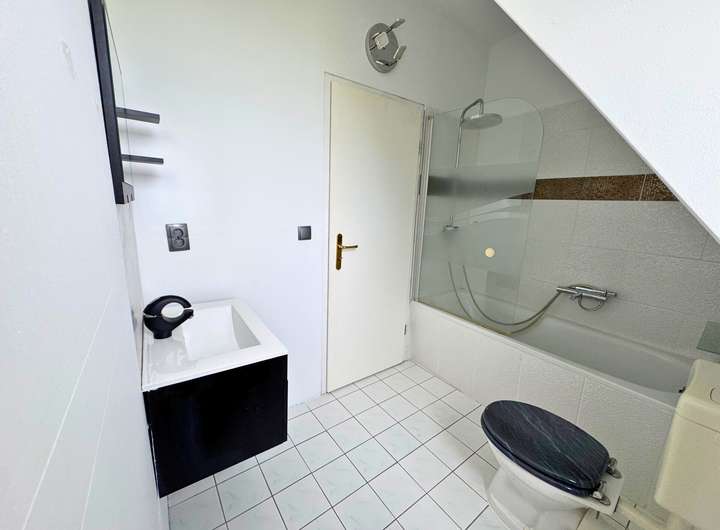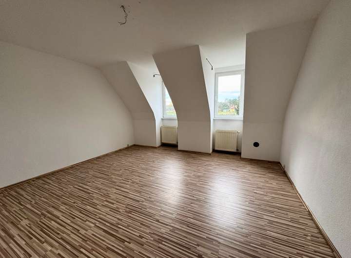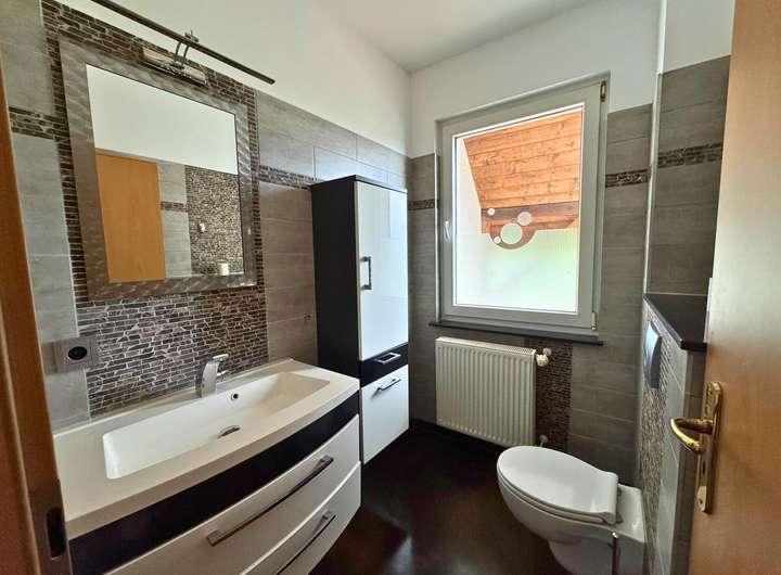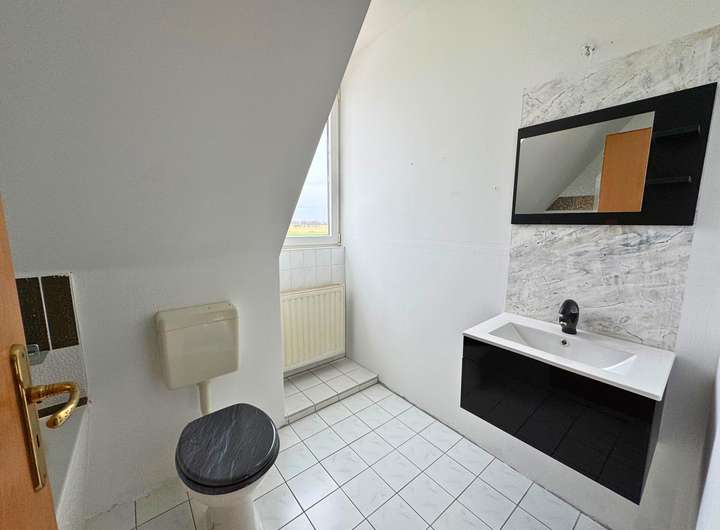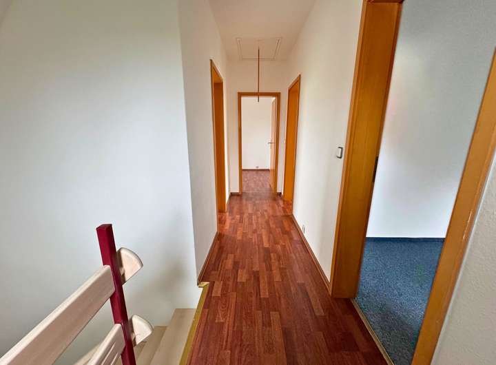 Das Obergeschoss bietet drei Schlafzimmer und ein Badezimmer, das mit einer Badewanne ausgestattet ist. Zusätzlich steht Ihnen ein Spitzboden zur Verfügung, der sich ideal als weiterer Stauraum nutzen lässt.