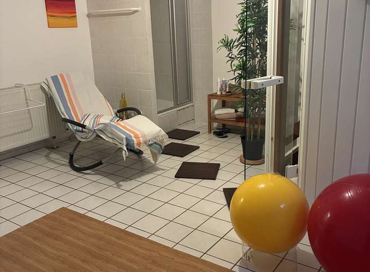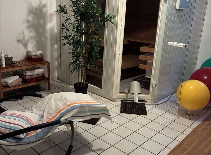 Im großen Keller befindet sich eine Sauna und eine weitere Dusche.Der Raum ist groß genug um Sportgeräte aufzustellen.