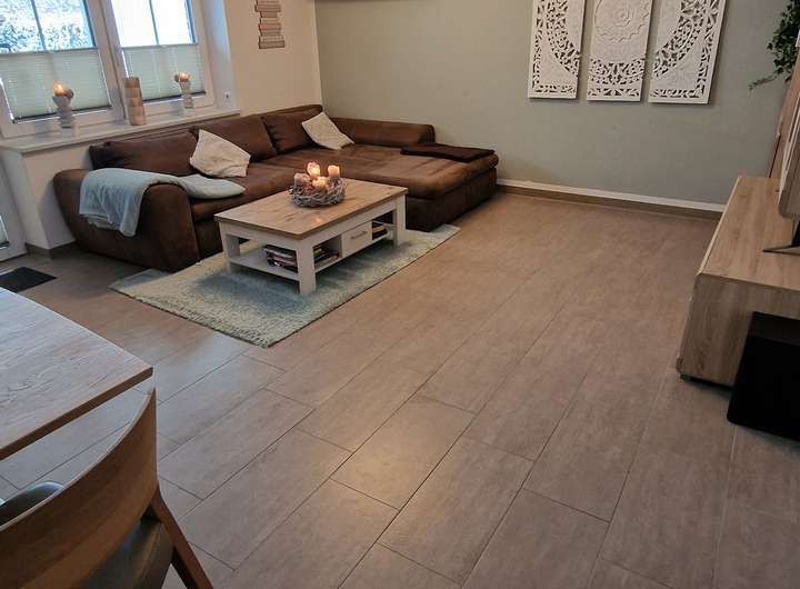 Vom Wohnzimmer aus gelangen Sie direkt über die überdachte Terrasse in einen weiteren Abstellraum und den Garten. Die Terrasse wurde erst im Oktober 25 mit einem Glasdach inkl. Beleuchtung und Beschattung sowie einem Hochwertigen BPC Boden, errichtet. Der Garten befindet sich in Südlage.