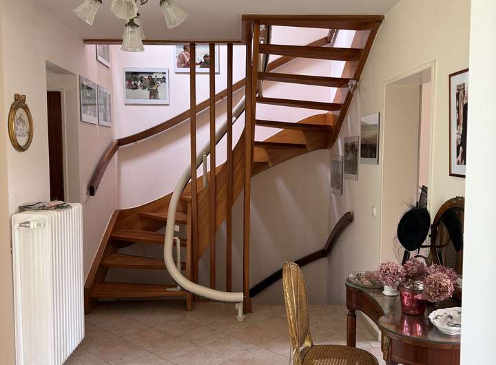 Die Immobilie ist derzeit eingerichtet (Stilmöbel) und verfügt über einen Treppenlift. Die Immobilie wäre im jetzigen Zustand also hervorragend nutzbar für Mieter, bei denen eine Gehbehinderung zu erwarten ist oder bereits vorhanden. Nach Absprache können sowohl Einrichtung als auch Treppenlift gegebenenfalls entfernt werden.