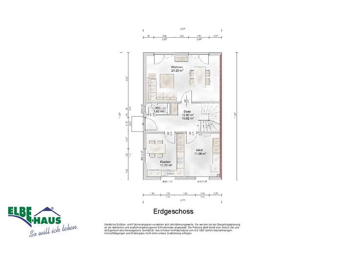 Dieses innovative Elbe-Haus® wird in massiver Bauweise von qualifiziertem Fachpersonal errichtet. Wir planen und projektieren nach Ihren Vorstellungen und Wünschen und somit ist wirklich jedes Haus einzigartig. Beachten Sie bitte, dass das abgebildete Haus lediglich ein Bebauungsbeispiel ist. Das Grundstück kann unter Berücksichtigung der örtlichen Bauvorschriften mit Ihrem Wunschhaus von Elbe-Haus® errichtet werden.