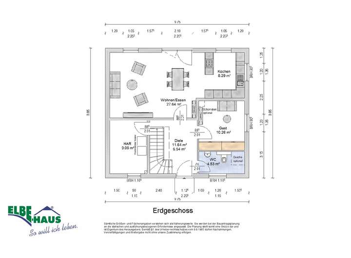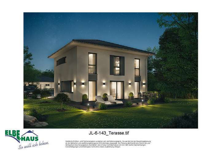 Dieses innovative Elbe-Haus® wird in massiver Bauweise von qualifiziertem Fachpersonal errichtet. Wir planen und projektieren nach Ihren Vorstellungen und Wünschen und somit ist wirklich jedes Haus einzigartig. Beachten Sie bitte, dass das abgebildete Haus lediglich ein Bebauungsbeispiel ist. Das Grundstück kann unter Berücksichtigung der örtlichen Bauvorschriften mit Ihrem Wunschhaus von Elbe-Haus® errichtet werden.