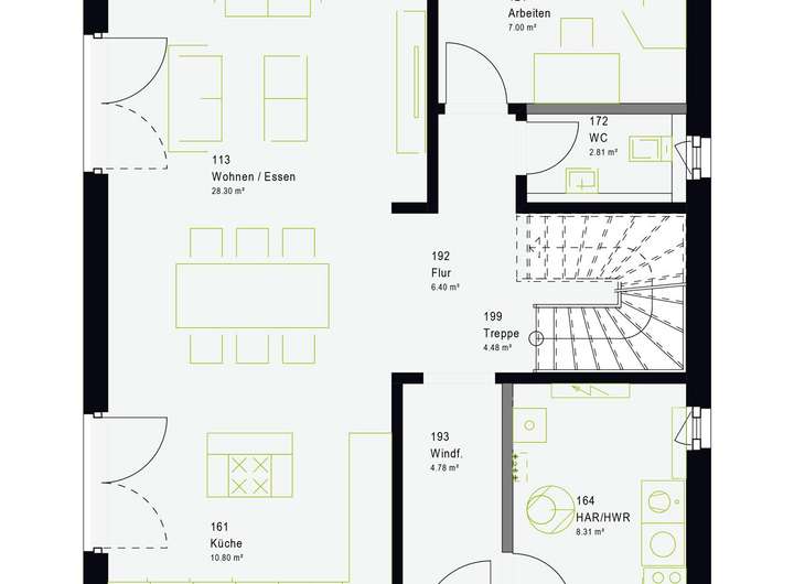 - Ausbauhaus inkl. Architektenleistung, Bodenplatte, Bodengutachten, Versicherungspaket, Technikpaket mit Montage (inkl. Wärmepumpe, Fußbodenheizung, Wohnraumlüftung, moderne Treppe, elektrische Rollläden, Elektroinstallation u.v.m.)