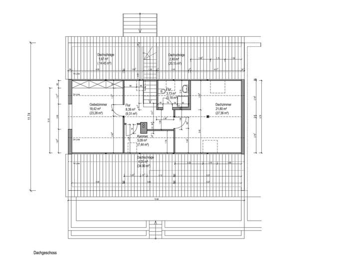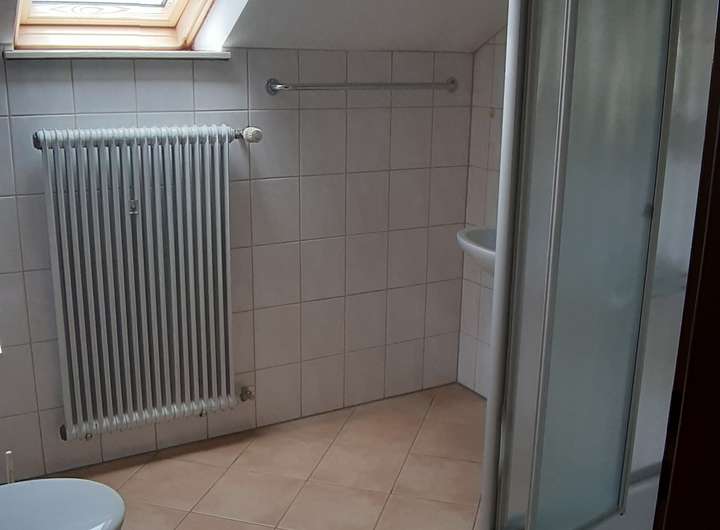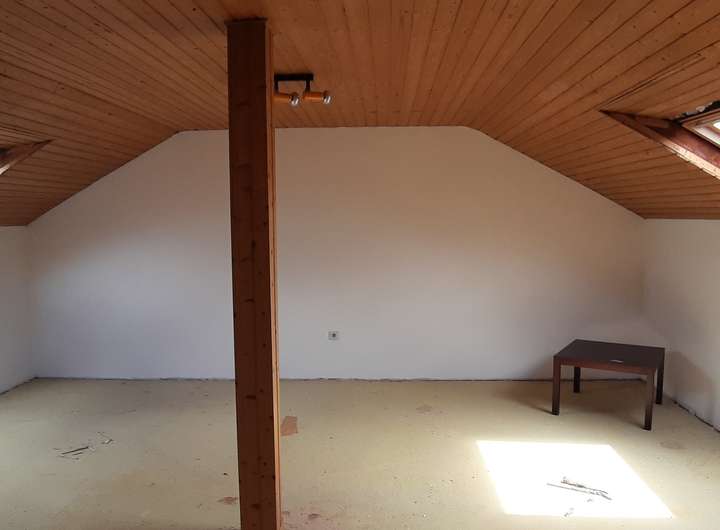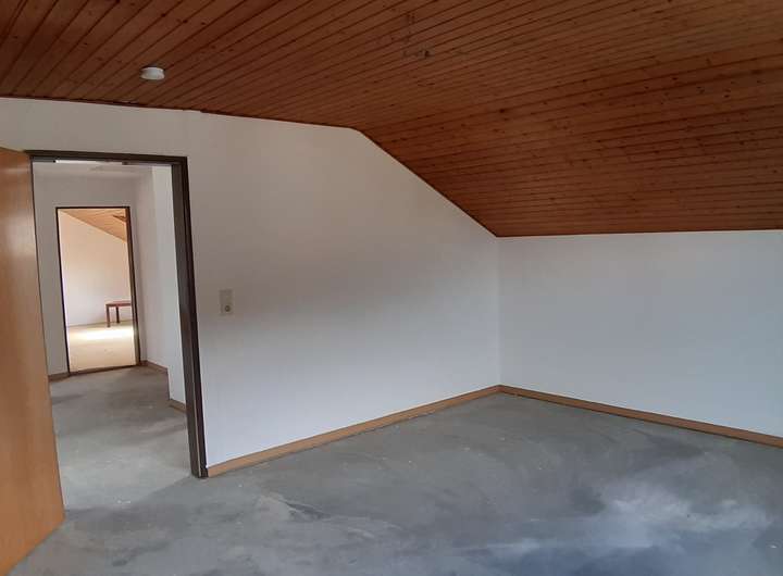 Im Dachgeschoss befindet sich ein Duschbad, eine kleine Kammer und 2 weitere große Schlaf- bzw. Wohnzimmer. Anschlüsse für eine mögliche Küche sind vorhanden. Die abgetrennten Dachschrägen bieten viel Abstellfläche.