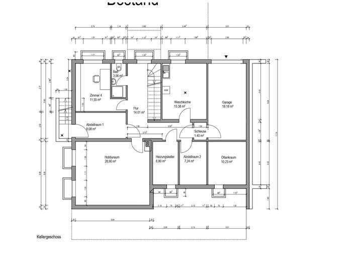 Im 2,50 m hohem Kellergeschoss befinden sich 2 weitere Wohnräume und ein Duschbad, eine große Waschküche, ein großer Abstellraum, ein Abstellraum mit Außenzugang, der Heizungsraum und die vom Kellerflur erreichbare Garage mit großer Werkbank und elektrischem Garagentor.
